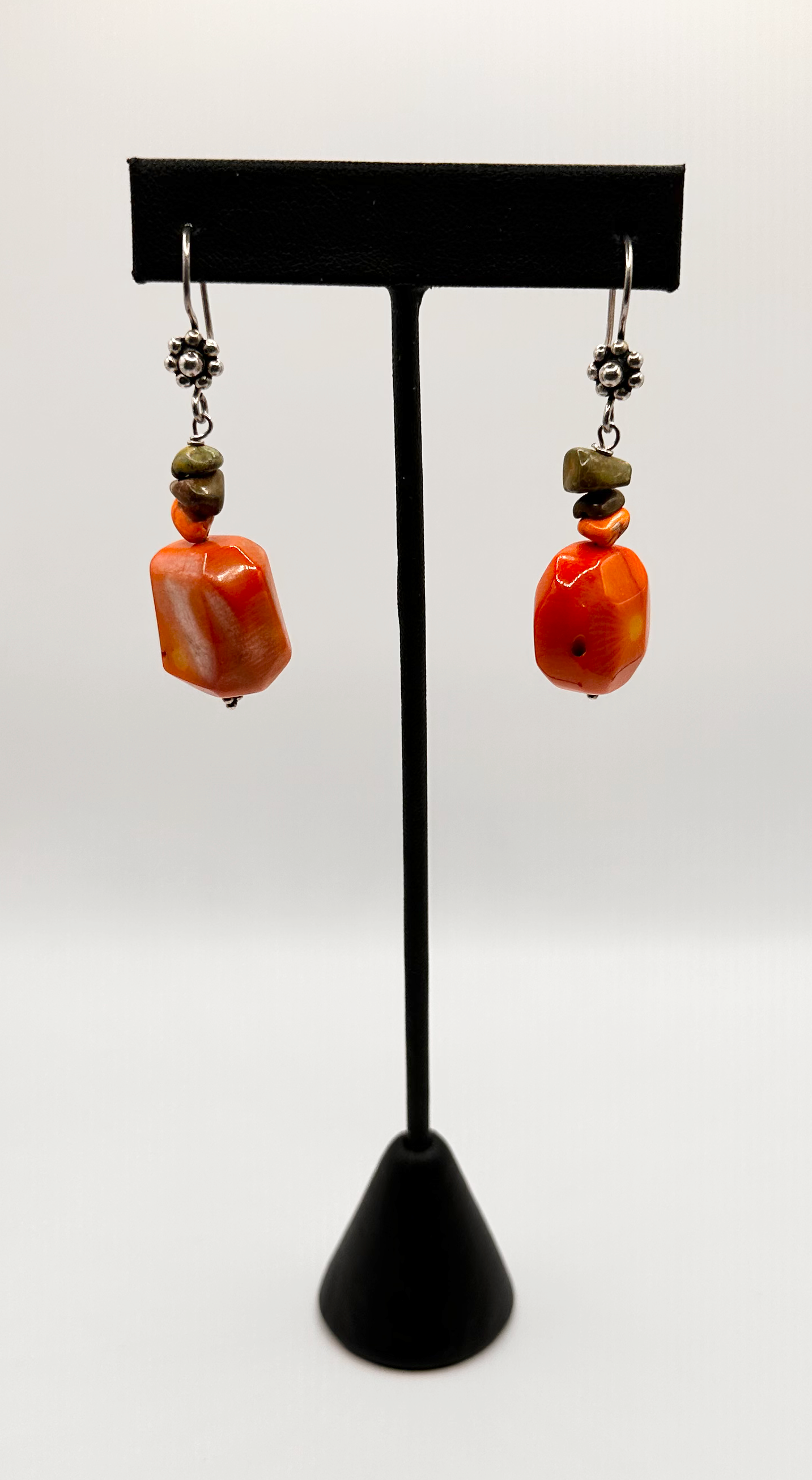 BOHO Style Orange Coral Bead Earrings with Sterling Silver Accents