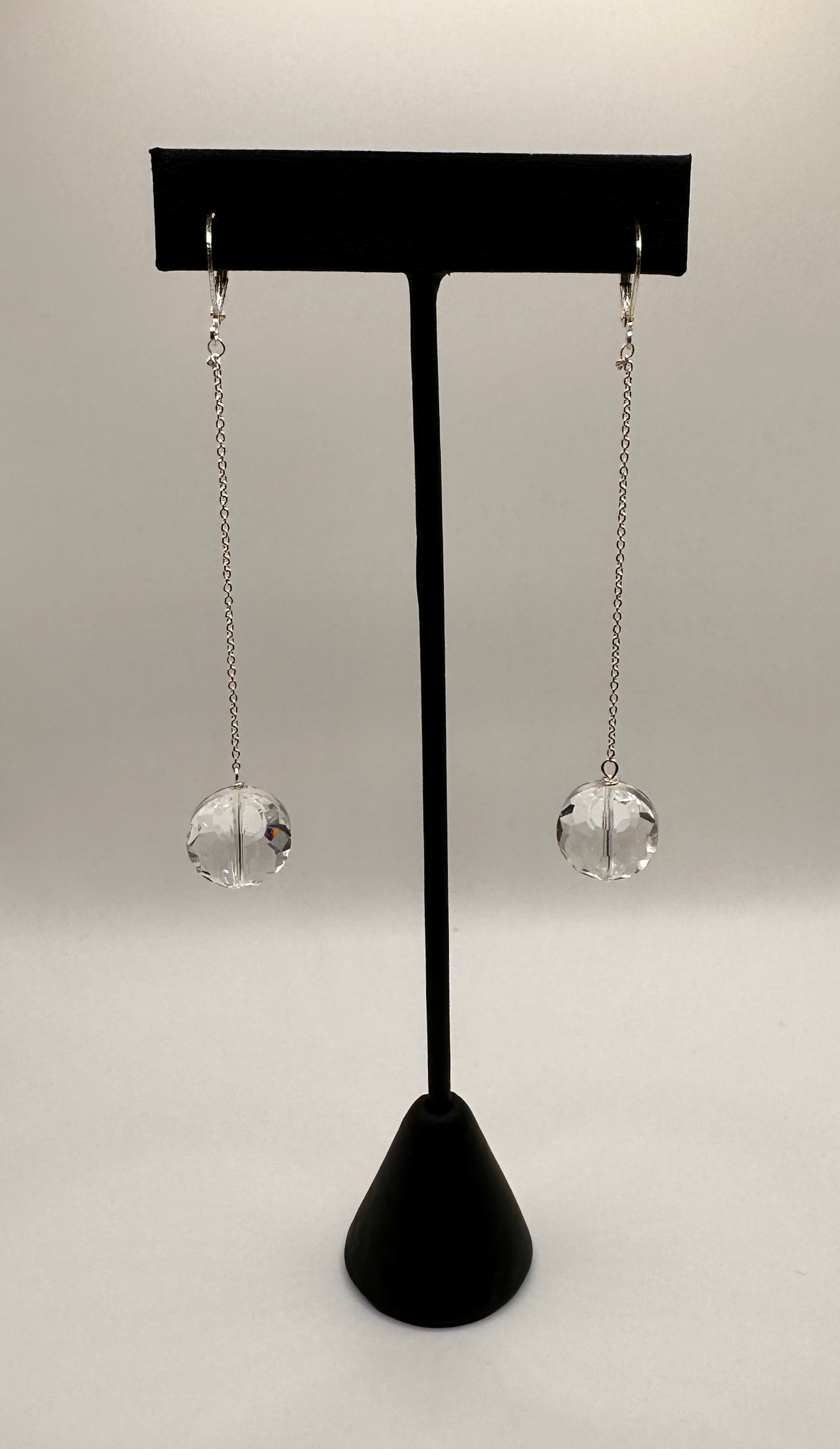 Clear Faceted Crystal With Sterling Silver Chain Earrings. These fabulous earrings and take your attire from day to the night life.